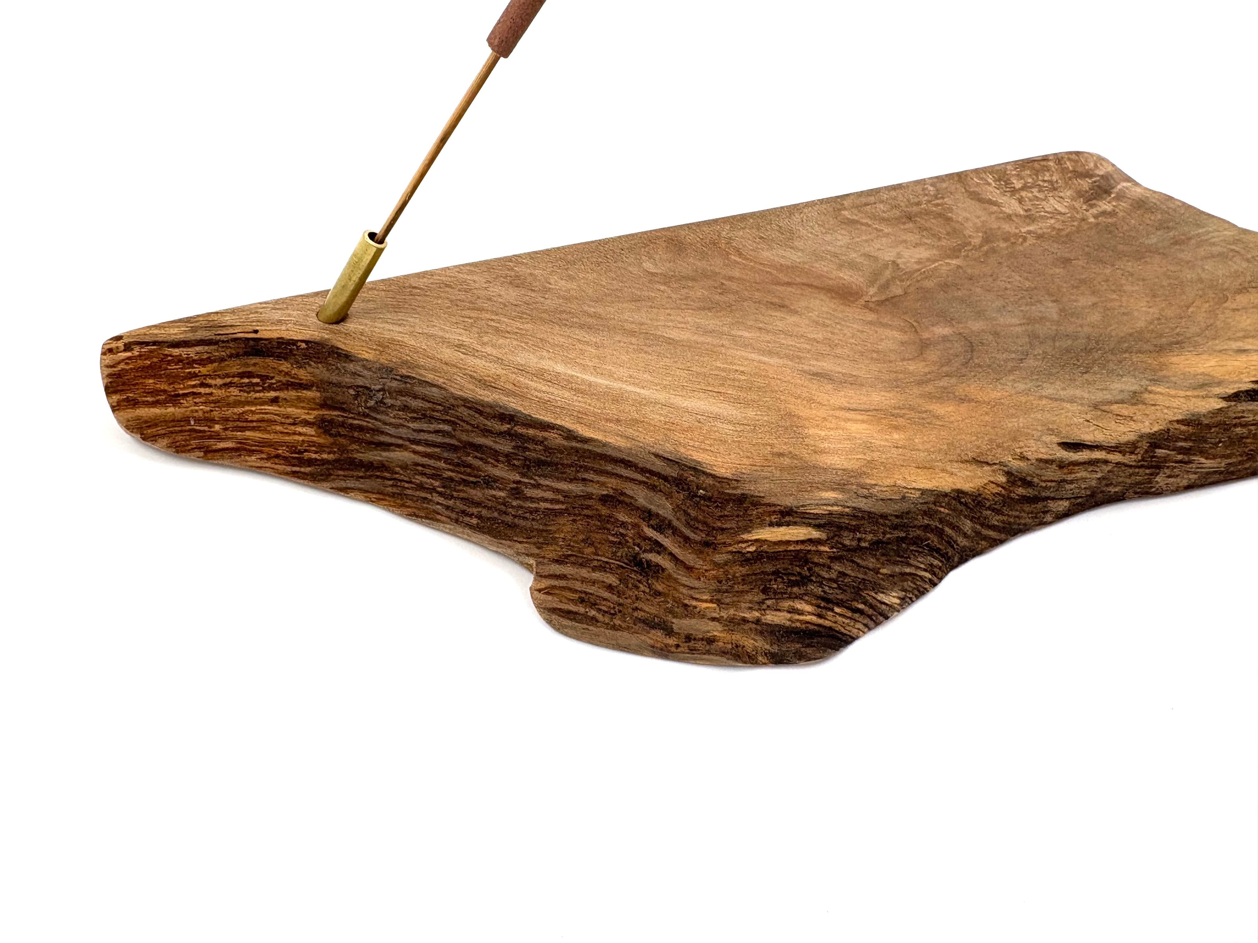 上面は比較的穏やかで、お香を焚くための静かな余白。一方、側面には木の力強さと時間の厚みがそのまま残されています。